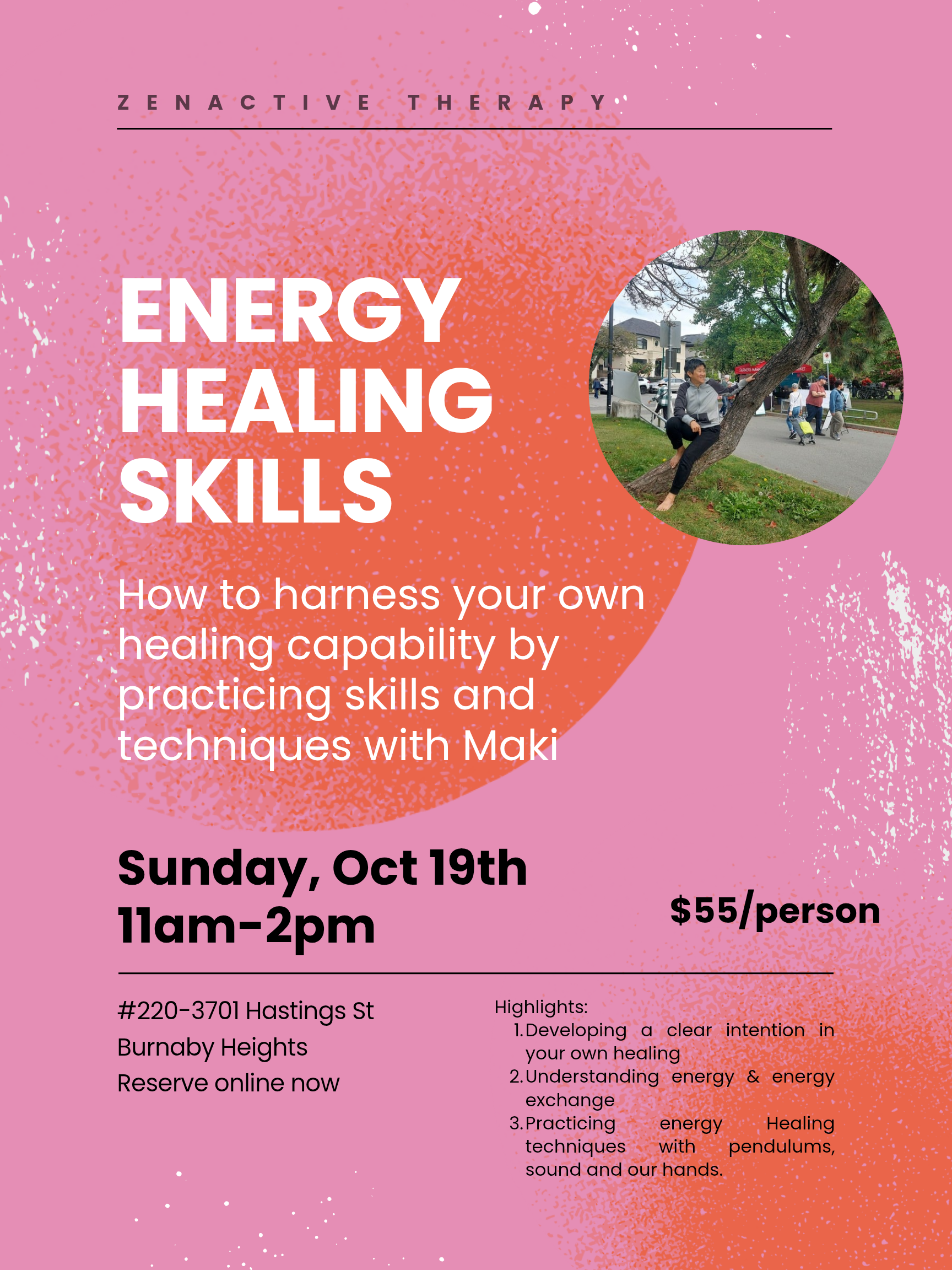 Join us in our next workshop by Maki Kogure, our energy healer. She will be going over basic energy principles and how to channel your own energy for healing. There is no experience necessary for this class, everyone is welcome. All you have to bring is an open mind and a willingness to learn.